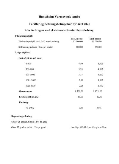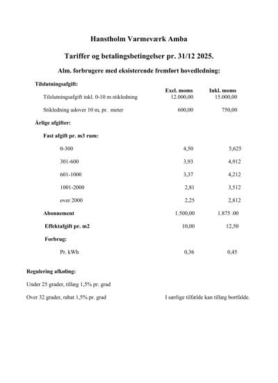 Tarifblad 2025 Pr. 31 12 Nedsatte Takster